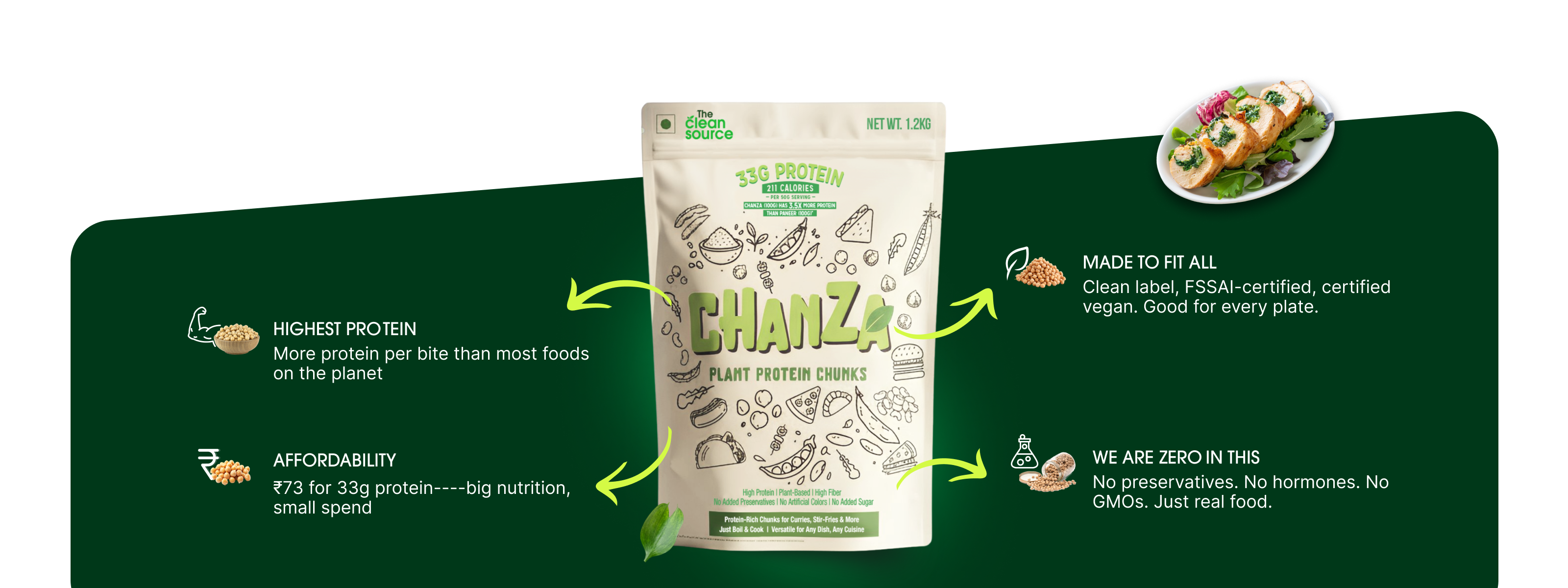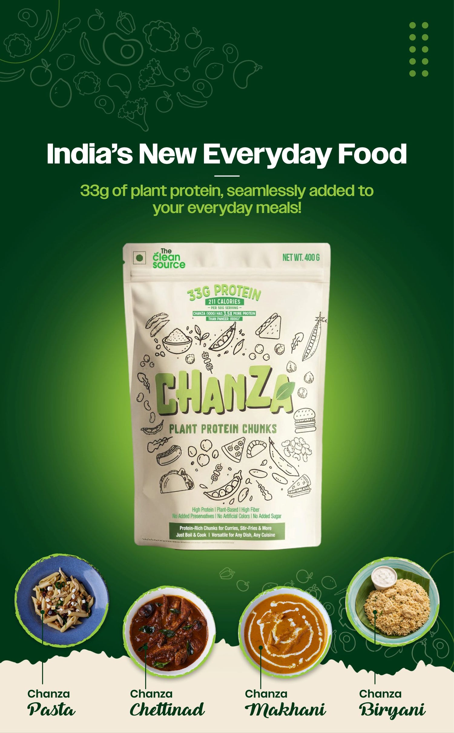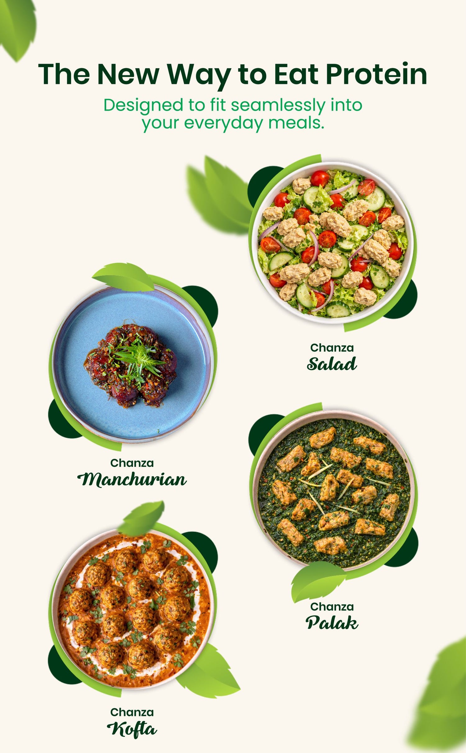 Chanza is a high-protein, vegan food made from chana, peas, mung beans, soya, and quinoa. It’s designed for Indian homes and everyday meals.